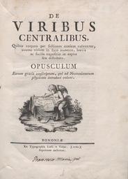 | Keywords: Zanotti - De viribus centralibus, 1762 - 4776114 980252 00005.tif Book Zanotti Francesco Maria De viribus centralibus ex typographia Laelii a Vulpe Bononiae lat it De viribus centralibus quibus corpora per sectiones conicas volvuntur centro virium in foco manente brevis ac facilis expositio in capita sex distributa Opusculum eorum gratia qui ad neutonianorum physicam introduci volunt - Bononiae ex typographia Laelii a Vulpe 1762 - 63 1 p 3 c di tav ripiegate ill ; 4ยบ - Vignetta calcografica sul frontespizio - Finalino xilografico - Nota di possesso manoscritta Francesco Maria Conti sul frontespizio http //gutenberg beic it/webclient/DeliveryManager pid 4776114 search_terms DTL6 BEIC 4776114 Institution BEIC PD-old-100-1923 Fisica - Sec 18 History of science |
