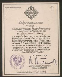 | Keywords: Zaswiadczenie za prace przy spisie powszechnym dla Tadeusza Goetzendorf-Grabowskiego.jpg paper accession number 53/5292/12 place of creation cc-zero Goetzendorf-Grabowski family Polish census of 1921 State Archive in Poznań Uploaded with VicuñaUploader 1921 in Warsaw |