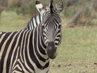 Keywords: zebra looking head standing nature wildlife mammal striped design portrait horse outdoors pattern