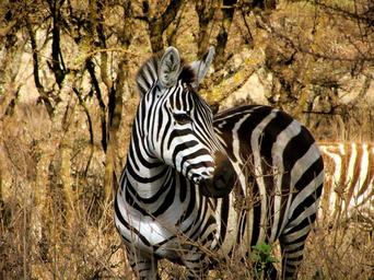 Keywords: zebra majestic wildlife white stripes black africa portrait safari herbivore watchful vulnerable park tanzania savannah flora fauna eye elegant nature habitat