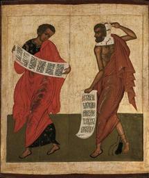 | Keywords: Zechariah and Bileam (17th-century, Russia).jpg П о ок Заха ия и волхв Валаам XVII век Из це кви Успения с Па ома Икона П о оческого яда Изоб ажение п о ока Заха ии и волхва Валаама в ост с азве нутыми свитками в уках Инв 1638 Псковский госуда ственный объединенный исто ико-а хитекту ный и художественный музей-заповедник http //culture cis pskov ru/ru/news/event/7877 17 век RusIcon Prophets line in iconostasis Files uploaded by Shakko from various sources 17th-century icons of Russia Bileam in icons Zechariah prophet in icons Icons of Pskov PD-Art |