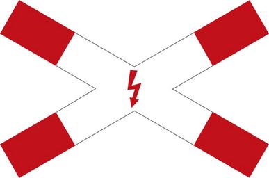 View Original:Zeichen 201-53 - Andreaskreuz mit Blitzpfeil (liegend), StVO 1992, 2013.svg (739x489)