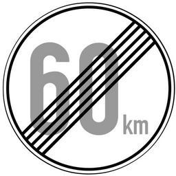 | View Original: | Zeichen 278 - Ende der zulässigen Höchstgeschwindigkeit (60 km-h), StVO 1970.svg (254x254) | |||