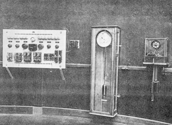 | Keywords: Zeiss di Merate - quadro elettrico e pendolo.jpg Telescopio Zeiss di 1 metro di apertura dell'Osservatorio Astronomico di Merate quadro elettrico pendolo e cronografo 1 meter Zeiss telescope at Merate Astronomical Observatory Merate LC Italy Electrical Image shows the master clock system; a precision astronomical regulator clock with an Invar pendulum wired to a paper tape time signal recorder right Old photo album at Merate Observatory Italy anonymous picture scanned from Il riflettore di 102 cm della R Specola di Merate - Ulrico Hoepli Milano 1929 1926 CAV PD-old Observatories in Italy Merate Reflecting telescopes Precision pendulum clocks 20th-century clocks Master clock |