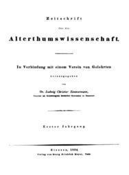 Keywords: Zeitschrift für die Alterthumswissenschaft 1834 Titel.png Titelseite der Zeitschrift / Title page of the periodical Eigenscan 1834 Diverse PD-old PD-US Magazines in German Magazine covers of Germany