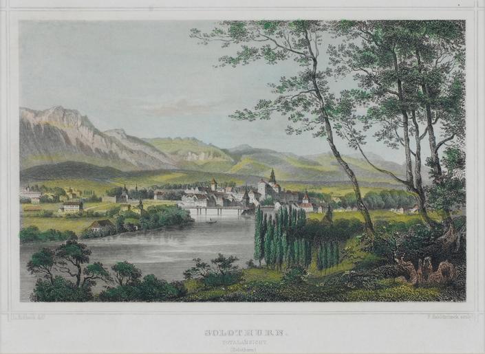 Keywords: Zentralbibliothek Solothurn - SOLOTHURNTOTALANSICHTSolothurn - a0022.tif Blick auf die Aare und Solothurn von SW oberhalb Dreibeinskreuz nach dem Bau der Eisenbahnbrücke im Vordergrund Gehölz im Hintergrund der Jura between 1861 1863 Technique Steel engraving paper watercolor techniques applied Size mm 197 142 institution Zentralbibliothek Solothurn object history credit line accession number Call number a0022 Zentralbibliothek Solothurn Public domain Information field ZBS form heading Vedute Information field ZBS form heading Landschaftsbild Zentralbibliothek Solothurn PD-old-70-1923 Historical images of Solothurn Ludwig Rohbock |
