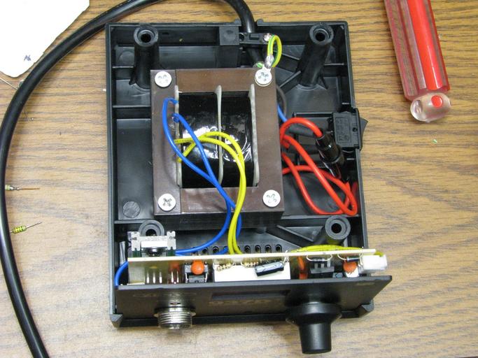 Keywords: zeny 937d+ zeny937d soldering station solderingstation soldering soldering iron solderingiron solder electronics fraudulent advertising fraudulentadvertising outdoor This shows the Zeny 937D+ soldering station inside from the top. Notice there are only two pairs of wires going to the circuit board: yellow for power for the control circuits and blue for power going to the soldering iron heating element. There is NO ground wire going from anywhere on the board to the ground lead screwed to the transformer. This soldering station is NOT ESD-safe as advertised. This shows the Zeny 937D+ soldering station inside from the top. Notice there are only two pairs of wires going to the circuit board: yellow for power for the control circuits and blue for power going to the soldering iron heating element. There is NO ground wire going from anywhere on the board to the ground lead screwed to the transformer. This soldering station is NOT ESD-safe as advertised. |
