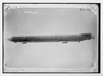 | Keywords: Zeppelin III in flight 04188u tif small.png en The German Zeppelin airship probably LZ 12 military number Z III April 25 1912 to August 1 1914 with incorrect year from Library of Congress If the 1907 date is correct then this can only be the LZ3 military number Z I with a rudder added after its first flights but was LZ3 ever modified that way Other possibilities LZ 4 June 20 1908 to 4 August 1908 had a rudder; LZ 6 August 25 1909 to 1910 This is a PNG version downscaled to 1024 pixels wide but otherwise unmodified from the original high resolution TIFF from the Library of Congress archive en Original information from Library of Congress source Original file has handwriting ZEPPELIN III in white and 872-12 in black <poem> TITLE Blimp Zeppelin No 3 in flight CALL NUMBER LC-B2- 872-12P P REPRODUCTION NUMBER LC-DIG-ggbain-04188 digital file from original neg RIGHTS INFORMATION No known restrictions on publication MEDIUM 1 negative glass ; 5 x 7 in or smaller CREATED/PUBLISHED 1907 date created or published later by Bain </poem> LOC-image ggbain 04188 http //memory loc gov/master/pnp/ggbain/04100/04188u tif uncompressed archival TIFF version 1907 Bain News Service publisher No known restrictions on publication File Zeppelin III in flight jpg JPEG lossily converted and modified from original File Zeppelin III in flight 04188u tif Original untouched high resolution TIFF File Zeppelin III in flight 04188u tif small png Uncropped JPEG downscaled from original TIFF File Zeppelin III in flight 04188u tif png PNG losslessly cropped to remove frame from original TIFF File Zeppelin III in flight 04188u tif front gondola png PNG losslessly cropped from original TIFF to show front gondola File Zeppelin III in flight 04188u tif rear gondola png PNG losslessly cropped from original TIFF to show rear gondola File Zeppelin III in flight 04188u tif empennage png PNG losslessly cropped from original TIFF to show empennage PD-USGov Zeppelin airships |