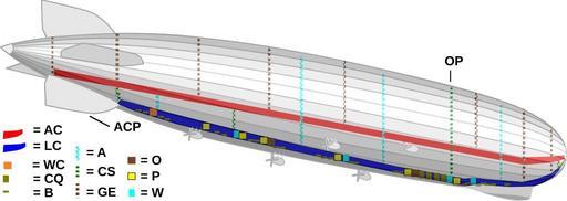 | Keywords: Zeppelin-LZ-127 internal opaque.svg en airship LZ 127 Graf Zeppelin drawing after model with internal structure slightly opaque Key ACP Auxiliary control post red AC axial corridor running from main ring -2 to the front mooring hub blue LC lower corridor running from main ring 20 to ring 211 ending at ladder to axial corridor orange WC crew's toilet beige CQ crew's quarters with tables chairs and berths beige B berths or cargo space blue stripes A ventilation shaft green stripes CS climbing shaft brown stripes GE exhaust gas shaft brown box O oil tanks yellow box P petrol tanks light blue box W water tank OP Observation post on top of hull Note this SVG file has two separate layers the model layer and the annotations layer Own and Thyes 2007 Thyes original 84user annotations File Airship-Zeppelin-LZ-127 svg Original diagram File Zeppelin-LZ-127 internal svg With internal structure File Zeppelin-LZ-127 internal and gas cells svg With internal structure and gas cells File Zeppelin-LZ-127 gas cells svg With internal gas cells File Zeppelin-LZ-127 internal and gas cells opaque svg With internal structure and gas cells slightly opaque thumb right 200px Thumbnail of this illustration at 200 pixels as rendered inside an article - Thyes ValidSVG http //upload wikimedia org/wikipedia/commons/5/5c/Zeppelin-LZ-127_internal_opaque svg AttribSVG Airship-Zeppelin-LZ-127 svg Thyes LZ 127 Graf Zeppelin Language-neutral aviation diagrams Line drawings of airships SVG aircraft Cutaway diagrams of aircraft |