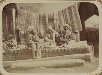 | Keywords: Zeravshan District. City of Samarkand. Vendor of Turbans WDL11153.png Artwork ru Кун Александ Людвигович 1840 1888 гг fr Kun Aleksandr L 1840-1888 en Kun Aleksandr L 1840-1888 zh 亚历山大·L· ,1840-1888 年 pt Kun Aleksandr L 1840-1888 ar كُن، ألكسندر ل ، 1840-1888 es Kun Aleksandr L 1840-1888 ru Зе авшанский ок уг Го од Сама канд П одавец тю банов fr District de Zeravchan Ville de Samarcande Vendeur de turbans en Zeravshan District City of Samarkand Vendor of Turbans zh 扎拉夫桑区 撒马尔罕城 头巾商贩 pt Distrito de Zeravshan Cidade de Samarcanda Vendedor de turbantes ar مقاطعة زرافشان مدينة سمرقند بائع العمائم ru Эта фотог афия входит в этног афическую часть <em> Ту кестанского альбома </em><em></em> всесто оннего исследования Цент альной Азии п едп инятого после того как в 1860-х годах в егионе установилось господство Российской импе ии Альбом созданный по аспо яжению гене ала Константина Пет овича фон Кауфмана 1818 1882 годы пе вого гене ал-губе нато а оссийского Ту кестана состоит из четы ех частей в шести томах «Часть а хеологическая» два тома «Часть этног афическая» два тома «Часть п омысловая» один том и «Часть исто ическая» один том Основным составителем альбома был оссийский востоковед Александ Людвигович Кун аботавший совместно с иколаем Венедиктовичем Богаевским В альбоме п едставлено около 1200 фотог афий а также а хитекту ные планы аква ельные исунки и ка ты «Часть этног афическая» включает в себя 491отдельную фотог афию на 163 листах а фотог афиях изоб ажены п едставители азличных на одов егиона листы 1 33 повседневная жизнь и итуалы листы 34 91 а также виды де евень и го одов уличные то говцы и комме ческая деятельность листы 92 163 <br>Этног афические фотог афии; Г упповые по т еты; Головные убо ы; То говцы; Фотог афические исследования; По т етные фотог афии; Уличные то говцы; Тю баны; Тю кские на оды fr Cette photographie est extraite de la partie ethnographique de l'<em>Album du Turkestan</em> étude visuelle complète de l'Asie centrale entreprise après que l'Empire russe prit le contrôle de la région dans les années 1860 Commandé par le général Konstantin Petrovich von Kaufman 1818 1882 premier gouverneur général du Turkestan russe l'album est composé de six volumes en quatre parties la partie archéologique deux volumes la partie ethnologique deux volumes la partie sur les métiers un volume et la partie historique un volume L'album fut essentiellement compilé par l'orientaliste russe Aleksandr L Kun assisté de Nikolai V Bogaevskii Il comporte près de 1200 photographies et inclut également des plans architecturaux des dessins à l'aquarelle et des cartes La partie ethnographique compte 491 photographies sur 163 planches montrant des individus des différentes peuplades de la région planches 1 à 33 des scènes de la vie quotidienne et des rites planches 34 à 91 ainsi que des vues de villages et de villes de vendeurs ambulants et d'activités commerciales planches 92 à 163 <br>Photographies ethnographiques; Portraits de groupe; Coiffures; Marchands; Inventaires photographiques; Portraits photographiques; Vendeurs ambulants; Turbans; Peuples turciques en This photograph is from the ethnographical part of <em>Turkestan Album</em><em> </em>a comprehensive visual survey of Central Asia undertaken after imperial Russia assumed control of the region in the 1860s Commissioned by General Konstantin Petrovich von Kaufman 1818 82 the first governor-general of Russian Turkestan the album is in four parts spanning six volumes Archaeological Part two volumes ; Ethnographic Part two volumes ; Trades Part one volume ; and Historical Part one volume The principal compiler was Russian Orientalist Aleksandr L Kun who was assisted by Nikolai V Bogaevskii The album contains some 1 200 photographs along with architectural plans watercolor drawings and maps The Ethnographic Part includes 491 individual photographs on 163 plates The photographs show individuals representing the different peoples of the region Plates 1 33 ; daily life and rituals Plates 34 91 ; and views of villages and cities street vendors and commercial activities Plates 92 163 <br>Ethnographic photographs; Group portraits; Headgear; Merchants; Photographic surveys; Portrait photographs; Street vendors; Turbans; Turkic peoples zh 这张照片出自<em> 其斯 相册 </em>的民族部分,该相册是俄罗斯 国 19 世纪 60 年代取得中亚控制 后, 手制 的 部针对该 区的综合 图像调查记录 相册由俄罗斯驻 其斯 (俄罗斯 国中亚属 的名称)首任 康斯 丁·彼得罗维奇·凡· 夫曼(Konstantin Petrovich von Kaufman,1818 82 年)将军赞助完成,共分六卷,四个部分: 古部分 (两卷); 民族部分 (两卷); 贸易部分 ( 卷)和 历史部分 ( 卷) 相册的主要编纂人是俄罗斯 方学 亚历山大·L· Aleksandr L Kun 亚历山大是 尼可莱·V·柏盖维斯基 Nikolai V B