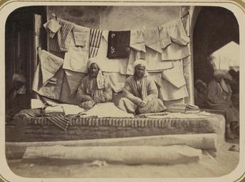 | Keywords: Zeravshan District. City of Samarkand. Vendor of Ready-made Shirts and other Clothing WDL11154.png Artwork ru Кун Александ Людвигович 1840 1888 гг fr Kun Aleksandr L 1840-1888 en Kun Aleksandr L 1840-1888 zh 亚历山大·L· ,1840-1888 年 pt Kun Aleksandr L 1840-1888 ar كُن، ألكسندر ل ، 1840-1888 es Kun Aleksandr L 1840-1888 ru Зе авшанский ок уг Го од Сама канд П одавец готовых убашек и д угой одежды fr District de Zeravchan Ville de Samarcande Marchand de chemises et d'autres vêtements en Zeravshan District City of Samarkand Vendor of Ready-made Shirts and other Clothing zh 扎拉夫桑区 撒马尔罕城 上衣等成衣商贩 pt Distrito de Zeravshan Cidade de Samarcanda Vendedor de camisas prontas e outras peças de roupa ar مقاطعة زرافشان مدينة سمرقند بائع أقمصة جاهزة وملابس أخرى ru Эта фотог афия входит в этног афическую часть <em> Ту кестанского альбома </em><em></em> всесто оннего исследования Цент альной Азии п едп инятого после того как в 1860-х годах в егионе установилось господство Российской импе ии Альбом созданный по аспо яжению гене ала Константина Пет овича фон Кауфмана 1818 1882 годы пе вого гене ал-губе нато а оссийского Ту кестана состоит из четы ех частей в шести томах «Часть а хеологическая» два тома «Часть этног афическая» два тома «Часть п омысловая» один том и «Часть исто ическая» один том Основным составителем альбома был оссийский востоковед Александ Людвигович Кун аботавший совместно с иколаем Венедиктовичем Богаевским В альбоме п едставлено около 1200 фотог афий а также а хитекту ные планы аква ельные исунки и ка ты «Часть этног афическая» включает в себя 491отдельную фотог афию на 163 листах а фотог афиях изоб ажены п едставители азличных на одов егиона листы 1 33 повседневная жизнь и итуалы листы 34 91 а также виды де евень и го одов уличные то говцы и комме ческая деятельность листы 92 163 <br>База ы; Одежда и платье; Этног афические фотог афии; Г упповые по т еты; Рынки; То говцы; Фотог афические исследования; По т етные фотог афии; Рубашки; Уличные то говцы; Тю кские на оды fr Cette photographie est extraite de la partie ethnographique de l'<em>Album du Turkestan</em> étude visuelle complète de l'Asie centrale entreprise après que l'Empire russe prit le contrôle de la région dans les années 1860 Commandé par le général Konstantin Petrovich von Kaufman 1818 1882 premier gouverneur général du Turkestan russe l'album est composé de six volumes en quatre parties la partie archéologique deux volumes la partie ethnologique deux volumes la partie sur les métiers un volume et la partie historique un volume L'album fut essentiellement compilé par l'orientaliste russe Aleksandr L Kun assisté de Nikolai V Bogaevskii Il comporte près de 1200 photographies et inclut également des plans architecturaux des dessins à l'aquarelle et des cartes La partie ethnographique compte 491 photographies sur 163 planches montrant des individus des différentes peuplades de la région planches 1 à 33 des scènes de la vie quotidienne et des rites planches 34 à 91 ainsi que des vues de villages et de villes de vendeurs ambulants et d'activités commerciales planches 92 à 163 <br>Bazars; Vêtements et habits; Photographies ethnographiques; Portraits de groupe; Marchés; Marchands; Inventaires photographiques; Portraits photographiques; Chemises; Vendeurs ambulants; Peuples turciques en This photograph is from the ethnographical part of <em>Turkestan Album</em><em> </em>a comprehensive visual survey of Central Asia undertaken after imperial Russia assumed control of the region in the 1860s Commissioned by General Konstantin Petrovich von Kaufman 1818 82 the first governor-general of Russian Turkestan the album is in four parts spanning six volumes Archaeological Part two volumes ; Ethnographic Part two volumes ; Trades Part one volume ; and Historical Part one volume The principal compiler was Russian Orientalist Aleksandr L Kun who was assisted by Nikolai V Bogaevskii The album contains some 1 200 photographs along with architectural plans watercolor drawings and maps The Ethnographic Part includes 491 individual photographs on 163 plates The photographs show individuals representing the different peoples of the region Plates 1 33 ; daily life and rituals Plates 34 91 ; and views of villages and cities street vendors and commercial activities Plates 92 163 <br>Bazaars; Clothing and dress; Ethnographic photographs; Group portraits; Markets; Merchants; Photographic surveys; Portrait photographs; Shirts; Street vendors; Turkic peoples zh 这张照片出自<em> 其斯 相册 </em>的民族部分,该相册是俄罗斯 国 19 世纪 60 年代取得中亚控制 后, 手制 的 部针对该 区的综合 图像调查记录 相册由俄罗斯驻 其斯 (俄罗斯 国中亚属 的名称)首任 康斯 丁·彼得罗维奇·凡· 夫曼(Konstantin Petrovich von Kaufman,18
