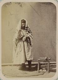 | Keywords: Zeravshan Okrug. Samarkand. A Jewish Man, Wearing a Prayer Shawl, Wrapping His Arm in Phylactery, in Preparation for Prayer WDL11152.png Artwork ru Кун Александ Людвигович 1840 1888 гг fr Kun Aleksandr L 1840-1888 en Kun Aleksandr L 1840-1888 zh 亚历山大·L· ,1840-1888 年 pt Kun Aleksandr L 1840-1888 ar كُن، ألكسندر ل ، 1840-1888 es Kun Aleksandr L 1840-1888 ru Зе авшанский ок уг Сама канд ужчина-ев ей в молитвенном пок ывале наматывает на уку филакте ию готовясь к молитве fr Zeravshan Okrug Samarcande Un juif portant une écharpe de prière et un phylactère au bras se préparant pour la prière en Zeravshan Okrug Samarkand A Jewish Man Wearing a Prayer Shawl Wrapping His Arm in Phylactery in Preparation for Prayer zh 扎拉夫桑区 撒马尔罕 个身穿祈祷披肩的犹太男人,正 自己的手臂上佩带经文护符匣,准备祈祷 pt Okrug de Zeravshan Samarcanda Um homem judeu vestindo um talit envolvendo o braço em um filactério em preparação para rezar ar زيرافشان أوكروغ سمرقند رجل يهودي، يرتدي وشاحًا للصلاة، ويُطَوّقَ ذراعه بتميمة، استعداداً للصلاة ru Эта фотог афия входит в этног афическую часть <em> Ту кестанского альбома </em><em></em> всесто оннего исследования Цент альной Азии п едп инятого после того как в 1860-х годах в егионе установилось господство Российской импе ии Альбом созданный по аспо яжению гене ала Константина Пет овича фон Кауфмана 1818 1882 годы пе вого гене ал-губе нато а оссийского Ту кестана состоит из четы ех частей в шести томах «Часть а хеологическая» два тома «Часть этног афическая» два тома «Часть п омысловая» один том и «Часть исто ическая» один том Основным составителем альбома был оссийский востоковед Александ Людвигович Кун аботавший совместно с иколаем Венедиктовичем Богаевским В альбоме п едставлено около 1200 фотог афий а также а хитекту ные планы аква ельные исунки и ка ты «Часть этног афическая» включает в себя 491отдельную фотог афию на 163 листах а фотог афиях изоб ажены п едставители азличных на одов егиона листы 1 33 повседневная жизнь и итуалы листы 34 91 а также виды де евень и го одов уличные то говцы и комме ческая деятельность листы 92 163 <br>Этног афические фотог афии; Ев еи; Фотог афические исследования; олитва; Тфилин fr Cette photographie est extraite de la partie ethnographique de l'<em>Album du Turkestan</em> étude visuelle complète de l'Asie centrale entreprise après que l'Empire russe prit le contrôle de la région dans les années 1860 Commandé par le général Konstantin Petrovich von Kaufman 1818 1882 premier gouverneur général du Turkestan russe l'album est composé de six volumes en quatre parties la partie archéologique deux volumes la partie ethnologique deux volumes la partie sur les métiers un volume et la partie historique un volume L'album fut essentiellement compilé par l'orientaliste russe Aleksandr L Kun assisté de Nikolai V Bogaevskii Il comporte près de 1200 photographies et inclut également des plans architecturaux des dessins à l'aquarelle et des cartes La partie ethnographique compte 491 photographies sur 163 planches montrant des individus des différentes peuplades de la région planches 1 à 33 des scènes de la vie quotidienne et des rites planches 34 à 91 ainsi que des vues de villages et de villes de vendeurs ambulants et d'activités commerciales planches 92 à 163 <br>Photographies ethnographiques; Juifs; Inventaires photographiques; Prière; Téfiline en This photograph is from the ethnographical part of <em>Turkestan Album</em><em> </em>a comprehensive visual survey of Central Asia undertaken after imperial Russia assumed control of the region in the 1860s Commissioned by General Konstantin Petrovich von Kaufman 1818 82 the first governor-general of Russian Turkestan the album is in four parts spanning six volumes Archaeological Part two volumes ; Ethnographic Part two volumes ; Trades Part one volume ; and Historical Part one volume The principal compiler was Russian Orientalist Aleksandr L Kun who was assisted by Nikolai V Bogaevskii The album contains some 1 200 photographs along with architectural plans watercolor drawings and maps The Ethnographic Part includes 491 individual photographs on 163 plates The photographs show individuals representing the different peoples of the region Plates 1 33 ; daily life and rituals Plates 34 91 ; and views of villages and cities street vendors and commercial activities Plates 92 163 <br>Ethnographic photographs; Jews; Photographic surveys; Prayer; Tefillin zh 这张照片出自<em> 其斯 相册 </em>的民族部分,该相册是俄罗斯 国 19 世纪 60 年代取得中亚控制 后, 手制 的 部针对该 区的综合 图像调查记录 相册由俄罗斯驻 其斯 (俄罗斯 国中亚属 的名称)首任 康斯 丁·彼得罗维奇·凡· 夫曼(Konstantin Petrovich von Kaufman,1818 82 年)将军赞助完成,共分六卷,四个部