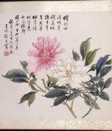 | Keywords: Zhang Xiong - Peonies - Walters 35101G.jpg This album of 16 paintings by artists active in Shanghai during the 1860s and 1870s is dedicated to the original owner Mr Xu Hongting The red and white peonies are flowers of the summer months and they are traditionally associated with wishes for prosperity and good fortune In pairing the white and red flowers the artist also inspires thoughts of harmony in marriage and strength within the family between 1860 1880 ink and color on paper mounted on cloth cm 38 9 38 4 accession number 35 101G 77227 Xu Hongting Hsü Hung-t'ing date and mode of acquisition unknown Liu Song-bu Liu Sung-pu Shanghai date and mode of acquisition unknown Panama Pacific International Exposition San Francisco China Pavilion 1915 no 285 Henry Walters city Baltimore Walters Art Museum Henry Walters Acquired by Henry Walters 1915 place of origin Shanghai China Walters Art Museum license 2D Chinese paintings in the Walters Art Museum Zhang Xiong 1803-1886 Media contributed by the Walters Art Museum needs category review |