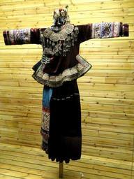 | Keywords: Zhuang woman embroidered, silver-ornamented dress - Yunnan Nationalities Museum - DSC04250.JPG Zhuang woman embroidered silver-ornamented dress Clothing exhibited in the Yunnan Nationalities Museum Kunming Yunnan China I took this photograph 2011-08-13 02 15 29 Daderot Public domain Clothing in the Yunnan Nationalities Museum Zhuang clothing | ||||