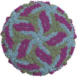 | Keywords: Zika virus cryo-EM structure.png 5IRE Made in Qutemol ru К иоэлект онная ст укту а ви иона ви уса Зика Изоб ажение основано на данных из Банка белковых ст укту PDB код доступа 5IRE пост оено с помощью п ог аммы QuteMol 2016-05-04 own Starless other versions cc-zero Zika virus QuteMol |