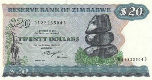 | Keywords: Zimbabwe $20 1982 Obverse.jpg This is the obverse of a paper banknote of the Zimbabwe Dollar en wikipedia 2008-10-02 Mangwanani wikipedia en PD-ZW-currency original upload log page en wikipedia Zimbabwe_ 2420_1982_Obverse jpg 2008-10-02 16 28 Mangwanani 550×296× 30897 bytes <nowiki> Summary This is an image of the front of the paper Zimbabwe dollar which circulated from 1980 and 1982 Use of this image in article Banknotes of the Reserve Bank of Zimbabwe is believed to be fair use because It adds </nowiki> Banknotes of Zimbabwe 1980-1994 Giraffes on banknotes Banknotes with a face value of 20 Grey banknotes of Zimbabwe |
