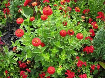 Keywords: zinnia geranium flowers blütenmeer bed discounts decoration decorative garden garden exhibition colorful color bright noble red yellow orange german federal horticultural show chinese lanterns spherical