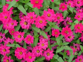 Keywords: zinnias pink flower summer flowers magenta flower bed garden flowers colorful