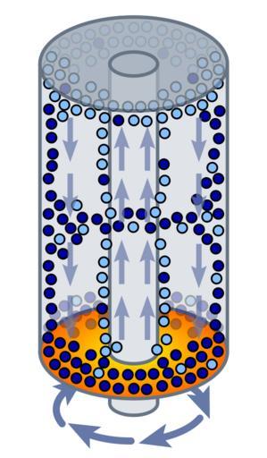 Keywords: Zippe-type gas centrifuge.svg Diagram illustrating the basic principle behind a Zippe-type gas centrifuge enrichment of uranium Here the heavy isotope of uranium U-238 is represented in dark blue while the lighter isotope of uranium U-235 is represented in light blue The input gas here represented as a fairly even mix of U-235 and U-238 though in reality natural uranium hexafluoride would have less than 1 of U-235 in it is released into the center of the centrifuge and the centrifugal forces force the heavier gas to concentrate at the edges of the centrifuge and the lighter gas at the center By heating the bottom of the centrifuge the lighter gas will be moved by convection currents to concentrate at the top while the heavier gas will concentrate at the bottom scoops not shown would then extract the gases Here the effect is greatly exaggerated for conceptual simplicity; in reality it would be very subtle and it takes thousands of centrifuges chained together to enrich any substantial amount of uranium to any substantial amount of enrichment Created by User Fastfission in Inkscape Created with Inkscape Fastfission If you want to credit someone credit Wikimedia Commons Otherwise don't credit anyone that's fine by me --Fastfission 15 17 14 April 2008 UTC Convection Uranium enrichment Centrifuges |