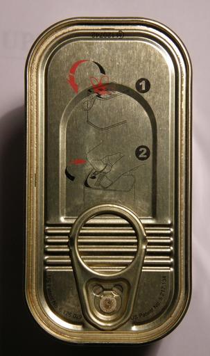 | Keywords: ZipperDose.JPG en Tin-opener de Dosenöffner mit Zipper Selbst fotografiert Own work User StromBer 2008-11-15 Zipper an Frühstücksfleisch-Dose mit den <br>US-Patent Nummer 6 126 029 + 5 217 134 Canned food Patents Patents from the United States |