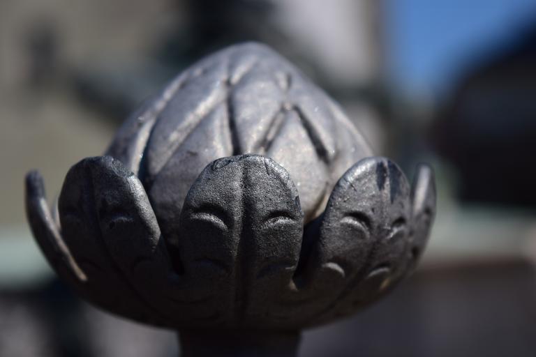 Keywords: zirbelnuss decoration augustus fountain detail close macro cast iron summer artwork craft historically beautiful middle ages