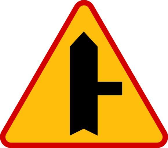 Keywords: Znak A-6b.svg Poland road sign A-6b Danger crossing with submitted road coming from right side Amada44 Diagrams of warning road signs of Poland SVG road signs in Poland Crossroad warning signs Illustrations by Amada44 Diagrams of triangular road signs Diagrams of black red yellow road signs |