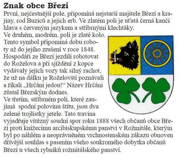 Keywords: Znak březí s komentářem.JPG cs Znak Březí s komentářem Kronika obce Březí Bořek Hrnčíř Coats of arms of municipalities of Strakonice District Czech text Březí Strakonice District