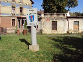 Keywords: Znak Žandova.jpg cs Znak na sloupku na počátku města při silnici od České Lípy own Zákupák 2010-10-08 Žandov Česká Lípa District