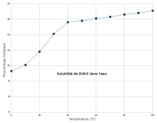 Keywords: ZnBr2 Solubilité dans eau.png fr Solubilité du bromure de zinc dans l'eau en fonction de la température Créée par mes soins avec OpenOffice org Calc et The Gimp d'après http //www hbcpnetbase com/ Handbook of Chemistry Physics Epop Check categories 2009 May 1 fr wikipedia Bromure_de_zinc 1 Zinc bromide |