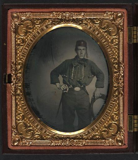| Keywords: library of congress libraryofcongress dc:identifier=http://hdl.loc.gov/loc.pnp/ppmsca.30609 dc:identifier=httphdllocgovlocpnpppmsca30609 xmlns:dc=http://purl.org/dc/elements/1.1/ xmlns:dc=httppurlorgdcelements11 u.s. civil war uscivilwar american civil war americancivilwar the civil war thecivilwar civil war civilwar war between the states warbetweenthestates united states of america unitedstatesofamerica u.s.a. usa the union theunion union the north thenorth yankee yankees soldier zouaves zouave union zouave unionzouave bayonet bowie knife bowieknife knife gun pistol revolver smith & wesson smithwesson smith and wesson smithandwesson smith & wesson revolver smithwessonrevolver smith and wesson revolver smithandwessonrevolver s&w sw s&w revolver swrevolver people photo border picture frame round [Zouave portrait from: Two portraits of an unidentified soldier in Union uniform and Zouave uniform with bayonet and sheath, bowie knife, and Smith and Wesson revolver] [between 1861 and 1865] 2 photographs in 1 case : sixth-plate ambrotype, hand-colored ; 9.6 x 8.4 cm (case) Notes: Title devised by Library staff. Case: Berg, no. 2-35. Deposit; Tom Liljenquist, 2010; (D 062) Subjects: United States.--Army.--People--1860-1870. Zouaves--Union--1860-1870. Soldiers--Union--1860-1870. Military uniforms--Union--1860-1870. United States--History--Civil War, 1861-1865--Military personnel--Union. Format: Portrait photographs--1860-1870. Ambrotypes--Hand-colored--1860-1870. Rights Info: No known restrictions on publication. Repository: Library of Congress, Prints and Photographs Division, Washington, D.C. 20540 USA, hdl.loc.gov/loc.pnp/pp.print Part Of: Ambrotype/Tintype filing series (Library of Congress) (DLC) 2010650518 Liljenquist Family collection (Library of Congress) (DLC) 2010650519 More information about this collection is available at hdl.loc.gov/loc.pnp/pp.lilj Persistent URL: hdl.loc.gov/loc.pnp/ppmsca.30609 Call Number: AMB/TIN no. 2625 [Zouave portrait from: Two portraits of an unidentified soldier in Union uniform and Zouave uniform with bayonet and sheath, bowie knife, and Smith and Wesson revolver] [between 1861 and 1865] 2 photographs in 1 case : sixth-plate ambrotype, hand-colored ; 9.6 x 8.4 cm (case) Notes: Title devised by Library staff. Case: Berg, no. 2-35. Deposit; Tom Liljenquist, 2010; (D 062) Subjects: United States.--Army.--People--1860-1870. Zouaves--Union--1860-1870. Soldiers--Union--1860-1870. Military uniforms--Union--1860-1870. United States--History--Civil War, 1861-1865--Military personnel--Union. Format: Portrait photographs--1860-1870. Ambrotypes--Hand-colored--1860-1870. Rights Info: No known restrictions on publication. Repository: Library of Congress, Prints and Photographs Division, Washington, D.C. 20540 USA, hdl.loc.gov/loc.pnp/pp.print Part Of: Ambrotype/Tintype filing series (Library of Congress) (DLC) 2010650518 Liljenquist Family collection (Library of Congress) (DLC) 2010650519 More information about this collection is available at hdl.loc.gov/loc.pnp/pp.lilj Persistent URL: hdl.loc.gov/loc.pnp/ppmsca.30609 Call Number: AMB/TIN no. 2625 |