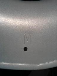 | Keywords: Zuckermanhelmetsize.jpg en Size marker - M for medium on Zuckerman helmet The single drilled hole denotes the helmet's resistance capability to ballistic impact own Londonclanger 2011-01-19 Civil defence of the United Kingdom in World War II Zuckerman helmet |