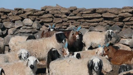 Keywords: Zud 3.JPG en Khurjun or blocks of sheep and goat dung to protect animals during the zud winter 2010 in South Gobi own Brücke-Osteuropa 2010-03-06 Gobi Desert