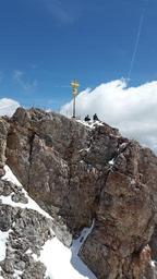 Keywords: zugspitze summit cross summit cross zugspitze massif mountains alpine weather stone wetterstein massif ostallgäu allgäu landscape rock view height steep rocky germany europe