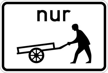| View Original: | Zusatzzeichen 724o - nur Fußgänger mit Handfahrzeugen oder sperrigen Gegenständen.svg (965x660) | |||