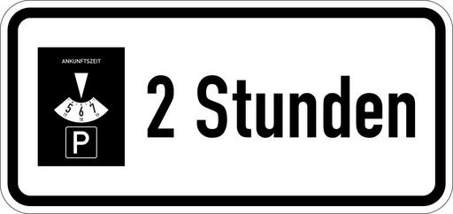 | View Original: | Zusatzzeichen 852 - mit Parkscheibe 2 Stunden - neuere Version, StVO 1982.svg (965x456) | |||