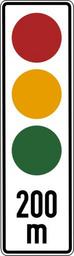 | Keywords: Zusatzzeichen - Ampel, 200 m, Zeichen zur StVO 1956.svg de Zusatzzeichen Ampel 200 m Dieses Zeichen wurde nach einem entzerrten Bild von 1963 angefertigt Für die Farben war damals das RAL-Farbtonregister 840 R im Einsatz own Mediatus 2013-09-07 Cc-zero PD-VzKat Diagrams of additional signs of Germany 1956 set Traffic signal signs |