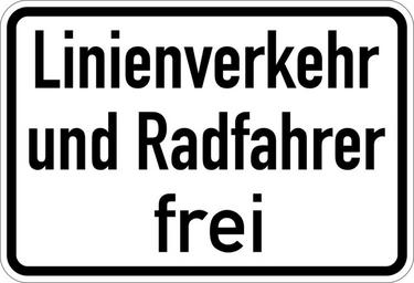 | Keywords: Zusatzzeichen - Linienverkehr und Radfahrer frei.svg de Zusatzzeichen Linienverkehr und Radfahrer frei; gesehen 2013 unmittelbar an dem stadteinwärts führenden beschrankten Bahnübergang am Bahnhof Wolfratshausen; hergestellt laut RAL-Aufkleber auf der Rückseite 1983 own Mediatus 06 September 2013 Herstellungsdatum + Signs User Mediatus/no-new-version Cc-zero PD-VzKat Diagrams of historic road signs of Germany German language signs SVG road signs in Germany | ||||