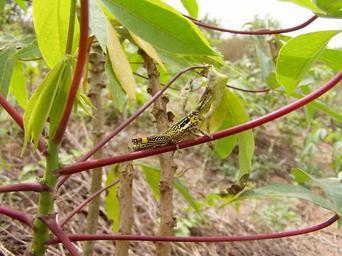 | Keywords: ZVA nymph L4.jpg en Fourth instar nymph L4 of the variegated grasshopper of stink locust Zonocerus variegatus photographed on cassava on 16/02/05 at the Biological Control Centre for Africa International Institute of Tropical Agriculture in Cotonou Benin by Christiaan Kooyman The fourth instar can be recognised from the older instars by the shorter wing buds and from the younger ones by the fact that the wing buds have turned the right side up own 2005-02-16 Christiaan Kooyman Zonocerus variegatus Manihot esculenta Nymphs biology Insects of Cotonou Benin |