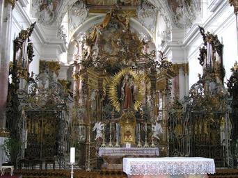 | Keywords: Zwiefalten7.jpeg en Monastery church of Zwiefalten/Germany de Klosterkirche Zwiefalten Gnadenmadonna vom Kreuzaltar Photo taken by Effi Schweizer Date 23 June 2006 2006-06-26 own assumed Lily Interior of Münster Unserer Lieben Frau Zwiefalten 2 Baroque altars in Münster Unserer Lieben Frau Zwiefalten |