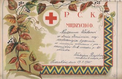 Keywords: Zyczenia dla Jozefa Pilsudskiego z okazji imienin(07).jpg paper accession number 53/4616/502 place of creation Sieraków cc-zero Józef Piłsudski State Archive in Poznań Uploaded with VicuñaUploader Polish Red Cross 1935 documents